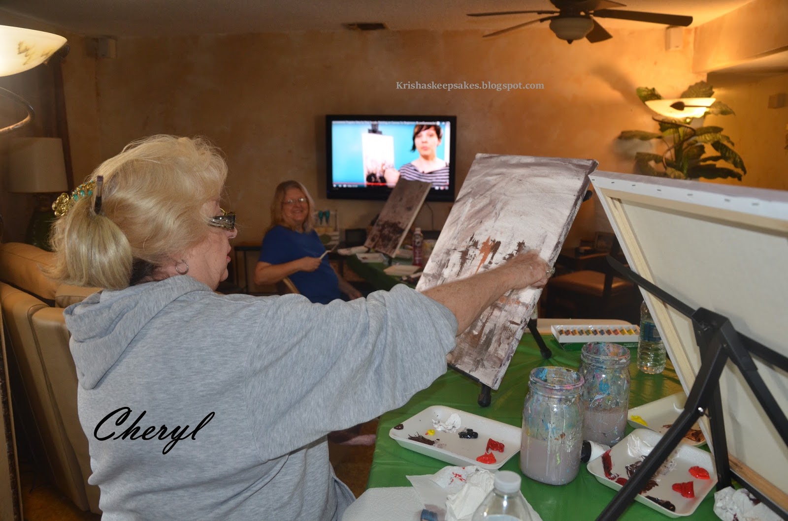 It is so much fun to see how they are all the same.....but different. When using a pallet knife the paint goes on thick and takes a while to dry.....even acrylic. Since none of us like to watch paint dry we went out to lunch. We were laughing and talking so much I completely forgot to take any pictures!! It was just the local Mexican restaurant that I have shared photos of before. BUT it always tastes so much better when sharing with good friends. We all decided we would get together once a month and paint......and the next date was set.....February 21. I have an other friend that wants to join us then, so then there will be five!